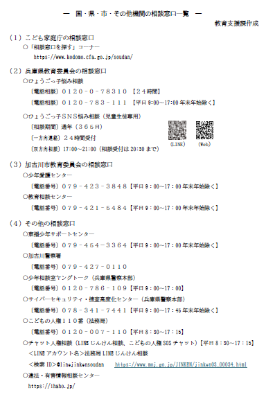 「SNS上における暴力行為等の動画の投稿・拡散」についての相談窓口一覧