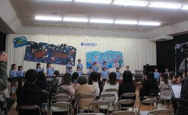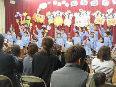 11月7日に音楽会を行いました。4歳児は、大好きなおやつが沢山でてくる曲をみんなで歌ったりカスタネット奏や合奏をしたりしました。初めての経験であったこどもも多くいましたが、お客様やお家の方に見ていただくことを喜び、指揮に一生懸命目を向けながら全身を使って歌い楽しく参加している姿が印象的でした。5歳児は、冒険をテーマに空や海に関わる曲で歌やベル奏、木琴奏、合奏に取り組みました。緊張しながらも友達と心を合わせて演奏したいという気持ちが声や音に表れていて成長を感じました。音楽を通して、先生や友達とのつながりがより深まってきていることに気付いた嬉しい一日でした。