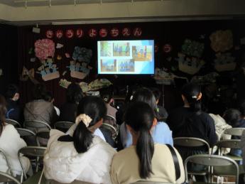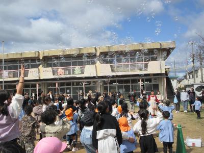2月28日に、鳩里幼稚園のお別れの会を開催しました。在園児や保護者だけでなく、多くのご来賓の方々や卒園児、保護者の皆様、地域の皆様に来園していただきました。思い出のスライドショーを見たり、加古川西高校吹奏楽部による”さよならコンサート”、シャボン玉ショーを楽しんだり…。久しぶりの懐かしい再会にあちらこちらで歓声があがる様子も見られました。84年という歴史のある鳩里幼稚園が閉園してしまう寂しさはありますが、これだけ多くの方にあたたかく見守っていただいたことを改めて実感した忘れられない一日となりました。
