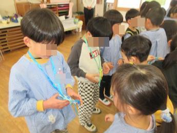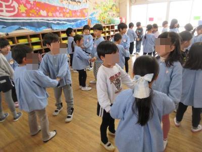 にじ組(4歳児)が、はな組(5歳児)に「ありがとう」「だいすき」の気持ちを伝えたいと、”5歳を送る会”を計画してくれました。ふれあい遊びやフルーツバスケットで楽しく遊んだ後は、素敵な歌やメダルのプレゼントも準備してくれていました。鳩里幼稚園最後の特別な一年間を一緒に過ごしたこども達。楽しかったこと、うれしかったこと、頑張ったこと…いつまでも大切な思い出にしてくれると嬉しいです。