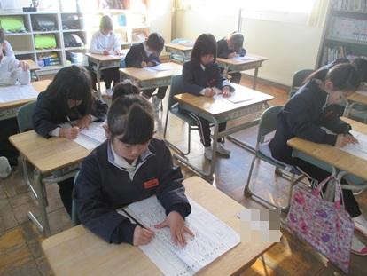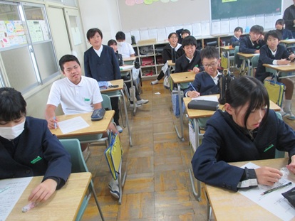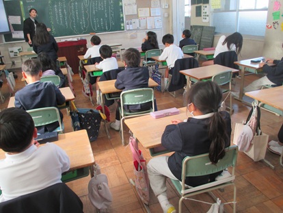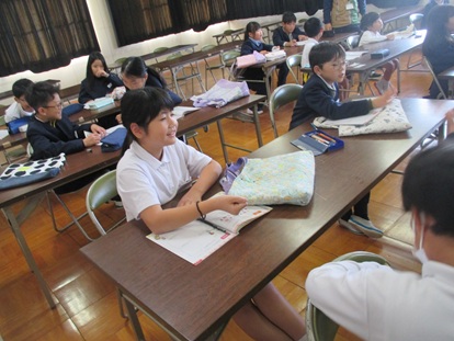 2年生も落ち着いて学習に取り組んでいました。ノート、教科書、筆箱が正しい位置に置かれています。