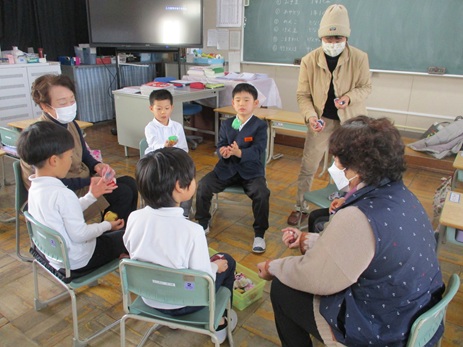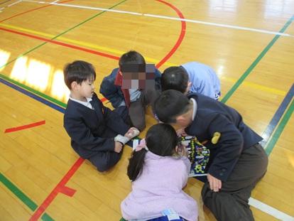 保護者が入学説明会をしている間、現1年生が新1年生になるお友達と交流をしました。