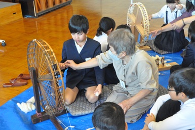 3年生は、総合的な学習の時間で綿学習をしています。地域の方々に協力を得て、綿を育て、糸を紡ぎ、機織りをして布になるまでを体験します。この取り組みは、2013年からはじまり、今年で13年目となります。