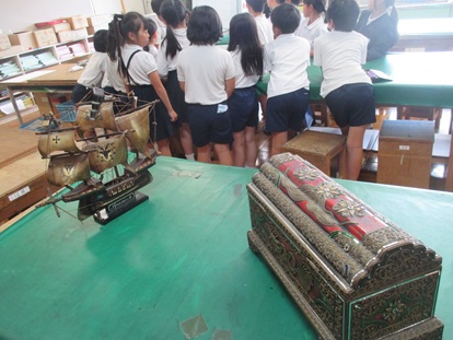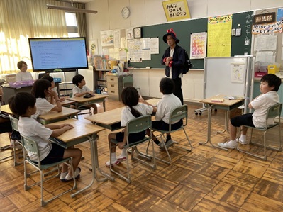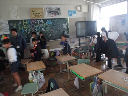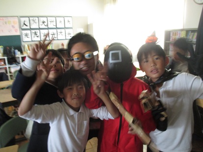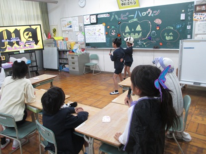 理科室では、「がいこつとにらめっこしよう」でした。さて笑ったのは、がいこつか子どもたちか? 1.2年生で楽しみながら学校探検ができました。2年生の皆さんお兄さんとして大活躍でしたね、ありがとう。