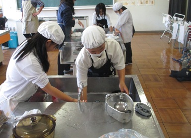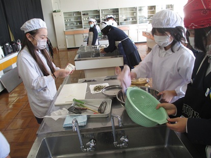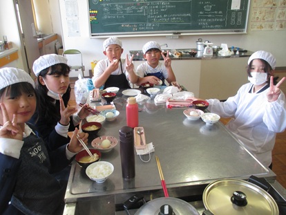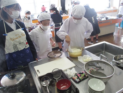 片付けも率先してテキパキと行い、隣の班の手伝いをしてる児童もいました。準備から片付けまで、自然学校での経験が大いに生かされた調理実習でした。