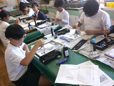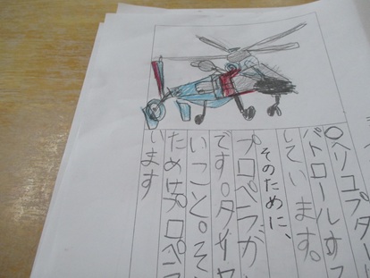 記録写真を見て、挿絵を描いたり、どんな働きをするのか、そのためにどのような作りになっているのか文章でまとめたりしています。