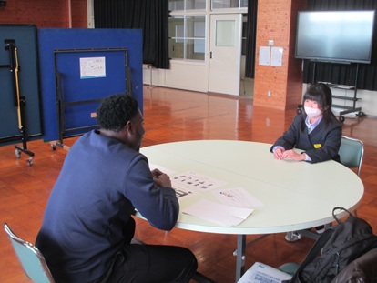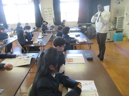 外国語指導の先生、サムソン先生が来られました。今日はサムソン先生が自己紹介をした後、出身のナイジェリアについて教えていただきました。主に月曜日と水曜日にと一緒に学習をします。よろしくお願いします。