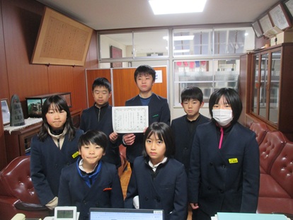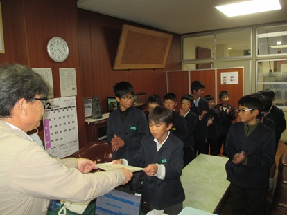 12月10日(水曜日) 去る11月30日に西公民館エリアの球技大会があり、そこで活躍した、ソフトボールチーム、バレーボールチームの表彰を校長室で行いました。