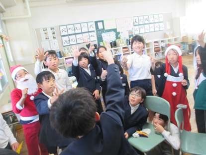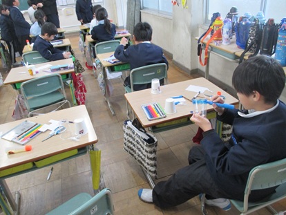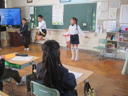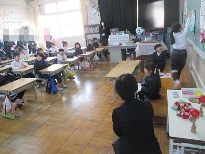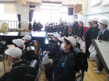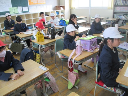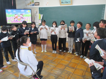その後、4年生1組でお別れタイム、「ありがとうの花」と「校歌」2曲 歌のプレゼントをしました。