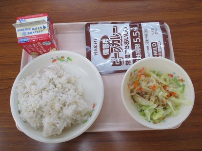 給食で防災カレーを食べました。🍛