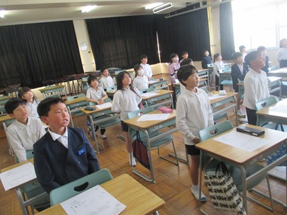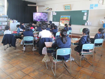 オープンスクールに向けてどの学年も準備が進んでいます。今日は、5年生の発表練習を4年生が見に行きました。発表の後半に「自然学校のスライド」が流れ、5年生は思い出を振り返るように、4年生は期待を膨らませながら見ていました。