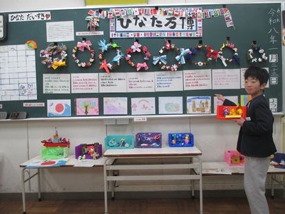 ひなた学級では、「一人一人が・自分がパッピーになる国」をつくり、その国を模型・リース・旗などで表現しました。またそこはどんな国なのか自分の作った国を紹介し合いました。ひなた万博は今日2/26~2/30までひなた学級で開催中です。
