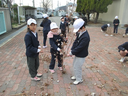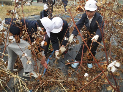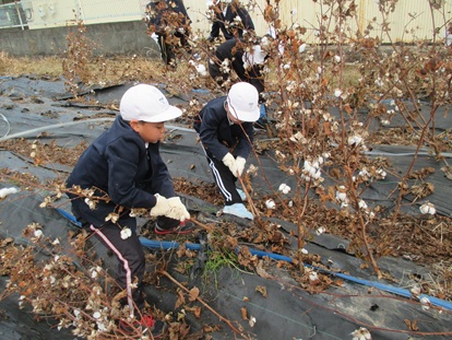 1月27日(火曜日) 3年生が、綿を育てていた畑の片づけを行いました。