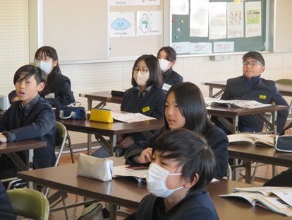 ALTの先生の指示を聞いて、元気よく発声しています。