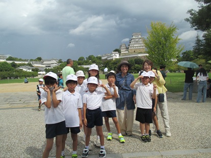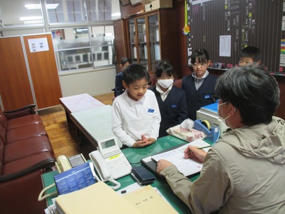 校長室では、校長先生に自己紹介した後、自分の名前と好きなものを書いた名刺を渡しました。