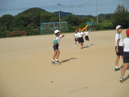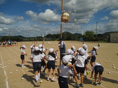 2時間目に5年生、5時間目に6年生がスポーツテストのボール投げをしました。