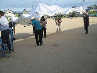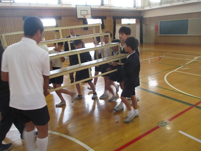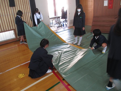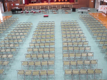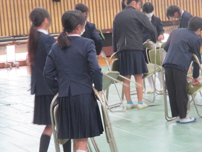 6年生は最高学年としての初仕事です。体育館のシート敷、椅子ならべなど体育館内の準備をしました。