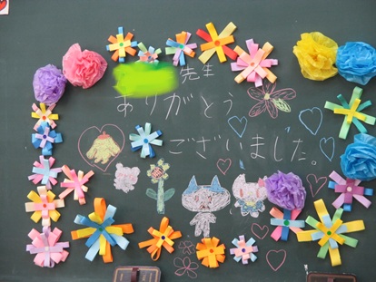 1時間目は、5月生まれのお誕生会でした。友達からおめでとうのメッセージカードをもらいました。