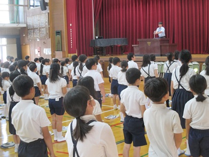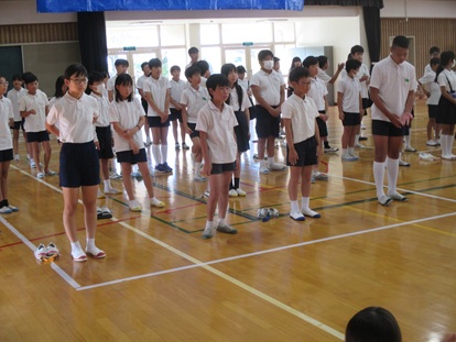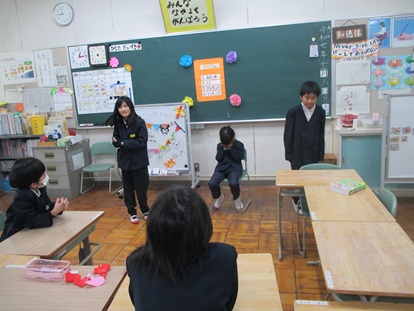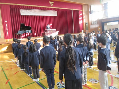 着任式では、西神吉っ子の元気なあいさつで先生方をお迎えしました。