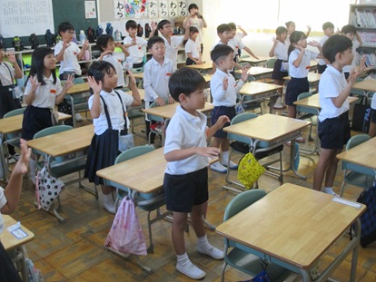式辞では、「たいせつなこと・にしかんき」を西神吉小学校のマスコットキャラクター「ピッカリ星人」と6年生がお手伝いをしてお話ししました。1年生の皆さん素敵な1年生になりましょう。6年生の皆さんお手伝いありがとう。