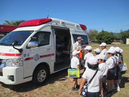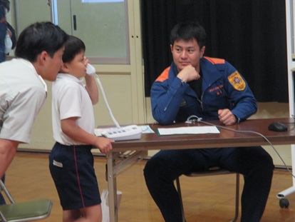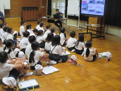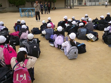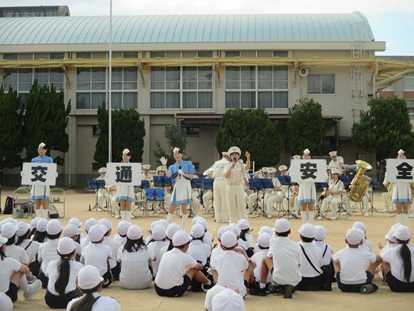 5月1日(木曜日)交通安全教室を実施しました。2時間目は1・2年生が歩行訓練を行いました。はじめに加古川警察署の警察官より交通安全の3つの約束を教えていただきました。