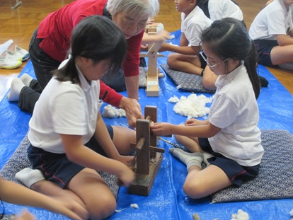その後は、種取りや糸車など、これから体験していくことについて説明してもらいました。さあ次回からは自分たちで作業をしていきます。綿名人さんよろしくお願いします。