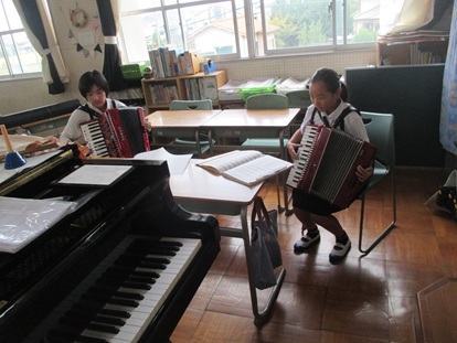 音楽会に向けて6年生は登校してから8時15分まで自主練習をしています。