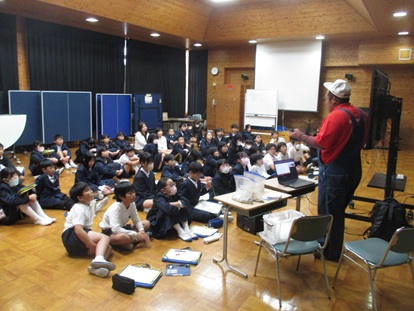 後半は、みんなが使うソプラノリコーダーよりもずっと小さいものから10倍以上長いリコーダーを紹介してもらいました。知っている曲が流れたので、多くの児童が歌っていました。