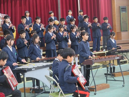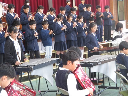 1年生は全校生を前にして初めての演奏でしたが、しっかりと歌・合奏を届けることができました。