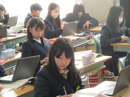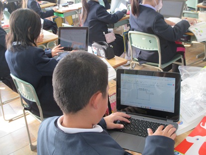 インターネットで調べ、図や表などを取り入れながら、グーグルスライドにまとめています。