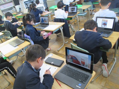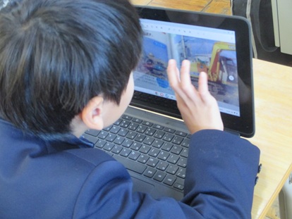 働く自動車について書かれた本から、興味を持った自動車を選び、クロームブックのカメラ機能を使って記録しました。