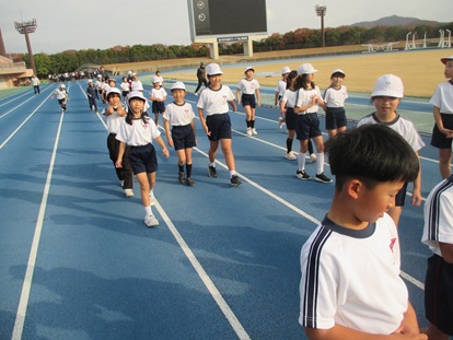 今日は、1年生、2年2組、4年生がマラソン記録会に向けて試走をしました。