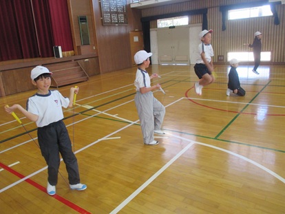 10月5日(金曜日)2年生は体育でなわとびに取り組んでいます。