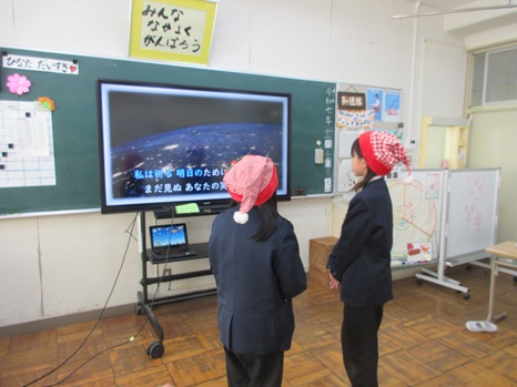 12月2日(火曜日)リモートで朝会を行いました。校長先生の話の後、作文や絵画の伝達表彰を行いました。