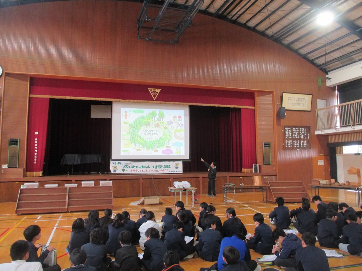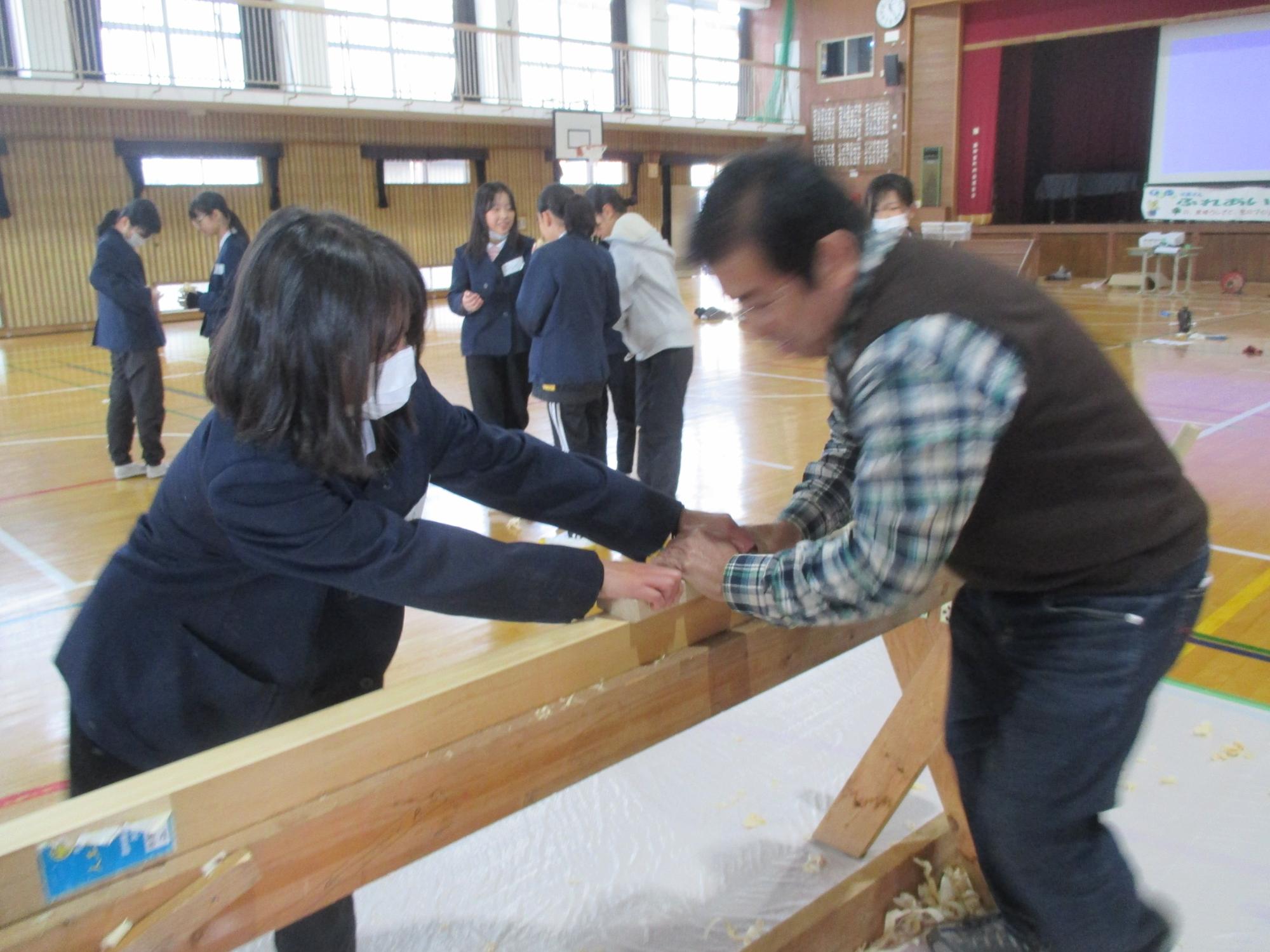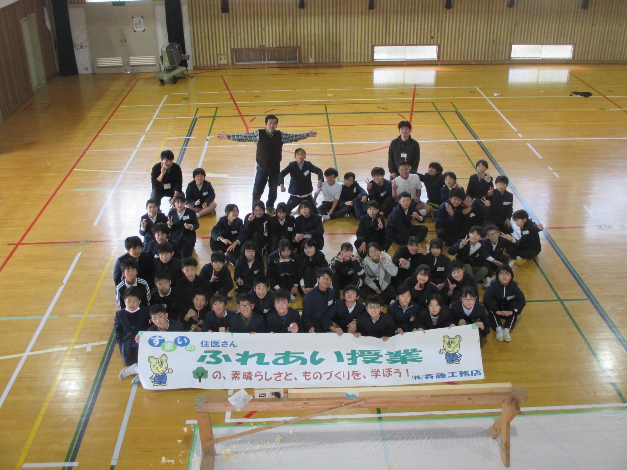 12月12日(金曜日) 6年生が木育を実施しました。この学習は、キャリア教育の一環として地域の工務店さんの協力で行われ、西神吉小学校では14年目になります。まずは、木の特徴や木材ができるまでの工程をスライドで学びました。
