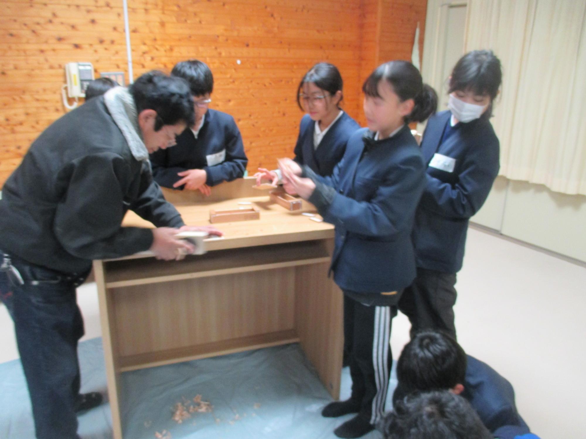 木の筆箱を作りました。説明書を見ながら一生懸命に取り組んでいました。