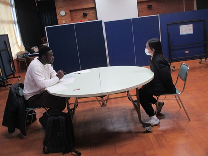 "What do you want to be?"「将来何になりたいですか?」や”What's your best memory?" 「一番の思い出は何ですか?」の質問に答えました。