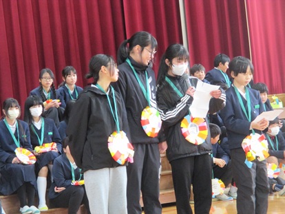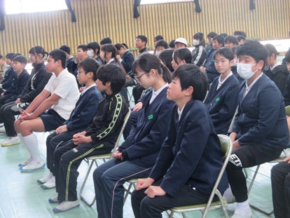 その後、保健の先生より「感染症予防について」、生徒指導の先生より「安全な生活について」話がありました。