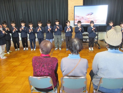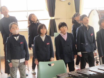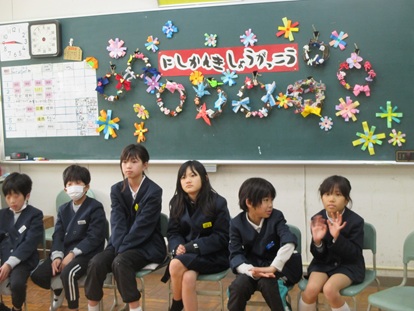 その後、4年生1組でお別れタイム、「ありがとうの花」と「校歌」2曲 歌のプレゼントをしました。