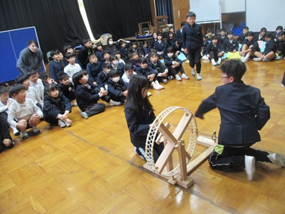 1月15日(木曜日)1年生が生活科の学習で昔遊びを行いました。