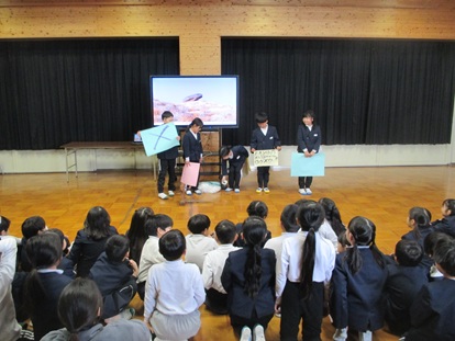 3月6日(金曜日) 5年生が4年生に向けて、委員会の紹介を行いました。