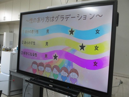 性には、1自分を思う性 2あらわす性 3好きになる性 がありそのあり方はさまざまであるというお話しでした。 自分も周りの人たちも大切にする心を育んでほしいと願っています。