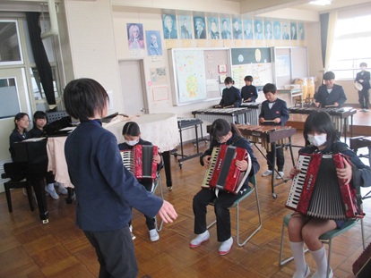 現在音楽では、それぞれのクラスで「ありがとうコンサート」を開催しようと計画し、練習に取り組んでいます。