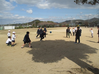 4年生みんなでお別れ会をしました。体育館で「ドッジボール」「王様取りゲーム」をしました。