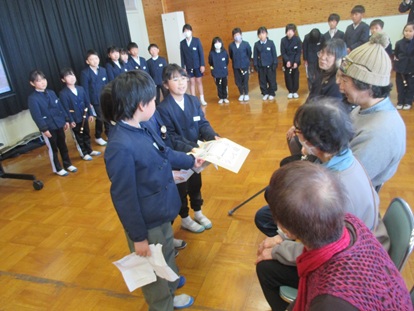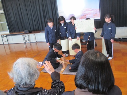 3月12日(木曜日) 3年生が、生活科の綿学習で1年間お世話になった綿名人さんへ、感謝の会を開きました。