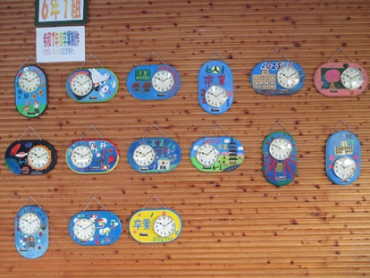 6年生が制作した、「大きなのっぽの記念時計」を2階多目的室に展示しました。