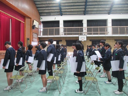 3月16日(月曜日)卒業式の予行を行いました。登校日数残り4日となりました。思い出に残る卒業式にしてください。