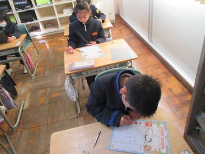 1月8日(木曜日)1年生、3年生、4年生、5年生が書初めを行いました。