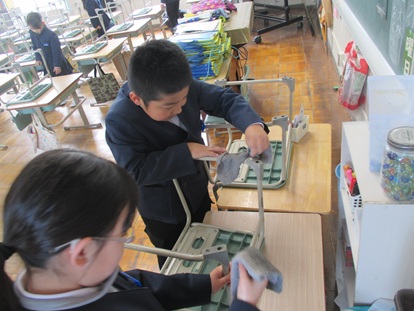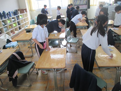 1年間使わせていただいた、机・椅子・棚などを、感謝の気持ちを込めて、きれいに掃除しました。