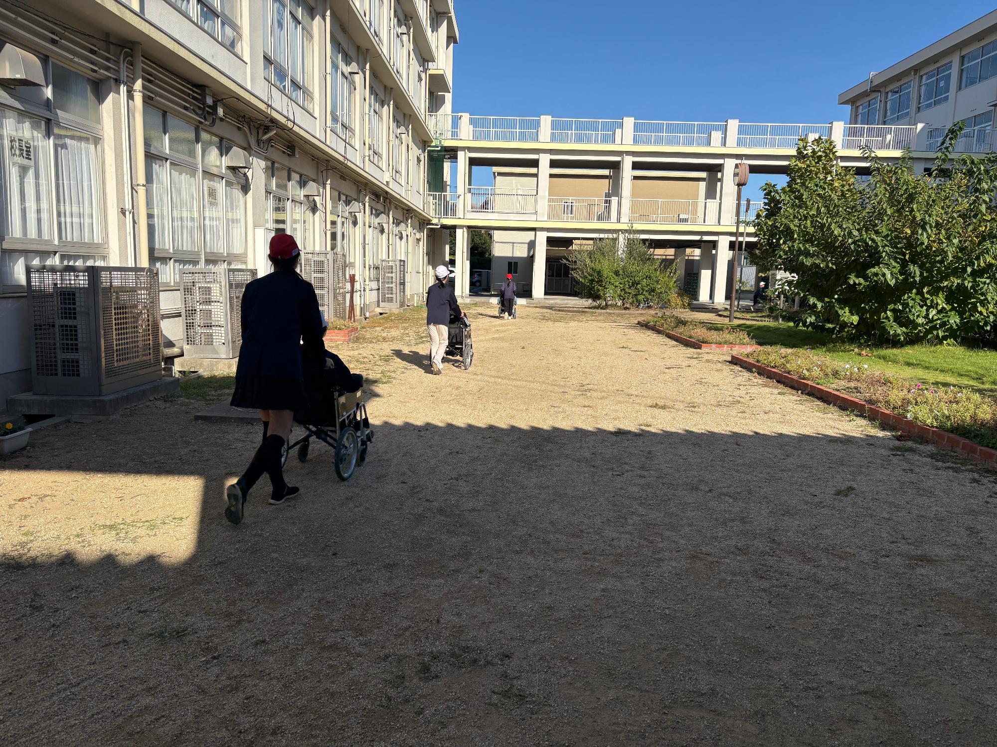 車いす体験では、砂利道やスロープ、段差を通ってみていつも通りの道でも車いすに乗る人や押す人にとっては通るのに工夫がいることを感じていました。